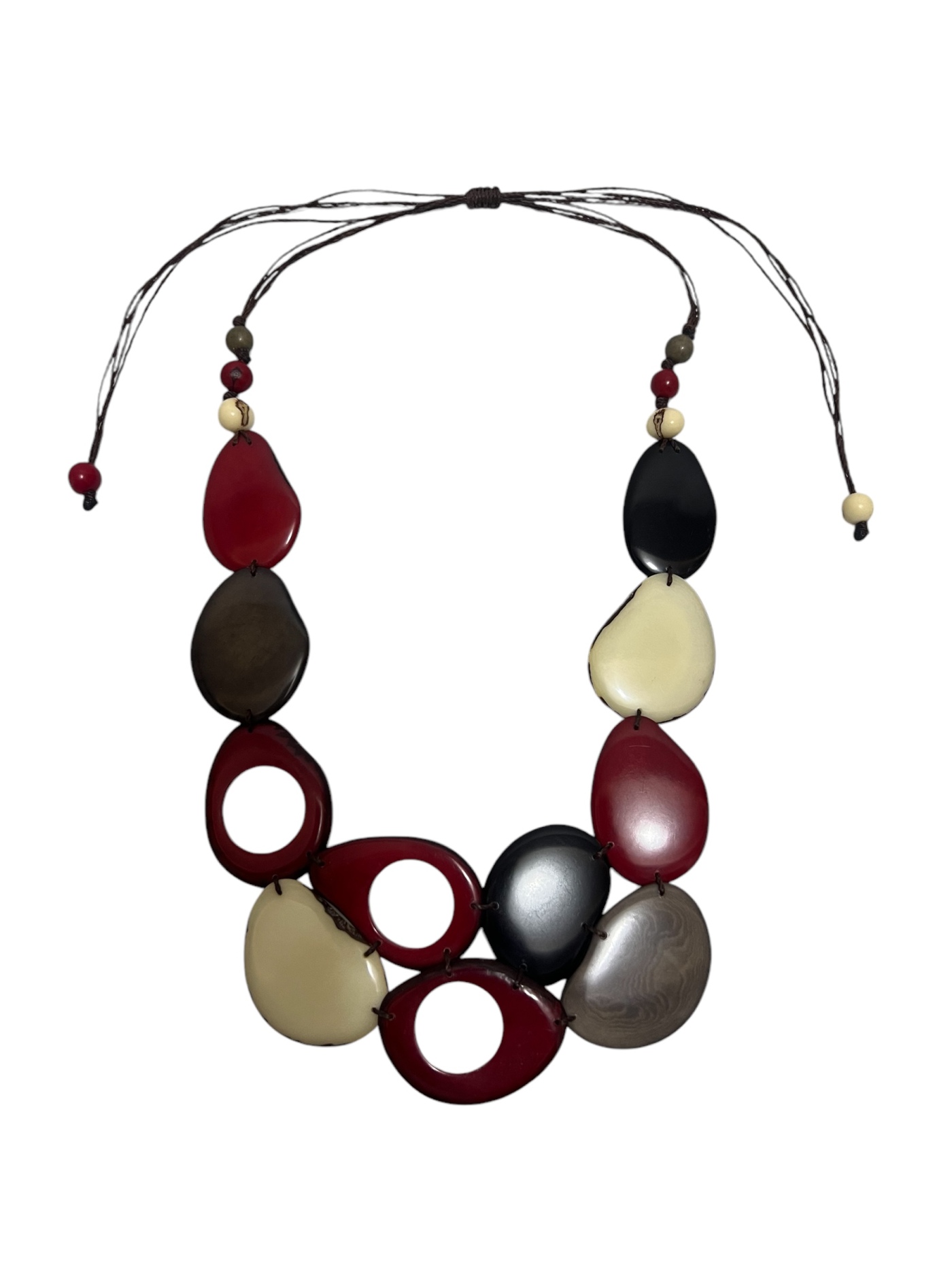 Estos exquisitos collares de tagua, elaborados con marfil vegetal natural, resaltan lo mejor del arte ecuatoriano y la moda sostenible. Cada pieza única y ecológica combina la artesanía con materiales éticos, lo que las convierte en una opción perfecta para uso personal o como una oferta única para la venta minorista. - Disponible en varios colores.